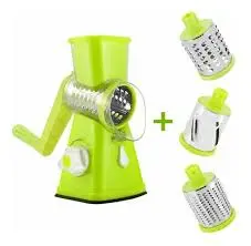 Este molinillo de verduras cuenta con 3 cuchillas intercambiables de acero inoxidable: una cuchilla para rebanar, una cuchilla para rallar grueso y una cuchilla para rallar fino. Es perfecto para rebanar papas, pepinos, rallar queso, zanahorias, moler nueces y mantequilla congelada. Rallar queso ya no es la parte más difícil de preparar la cena.